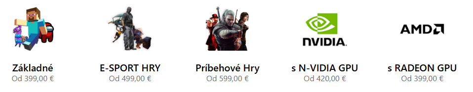 Ponuka zahŕňa herné zostavy pre rôzne rozpočty, výkonné grafické karty, procesory, SSD disky a ďalšie komponenty pre upgrade alebo stavbu PC.